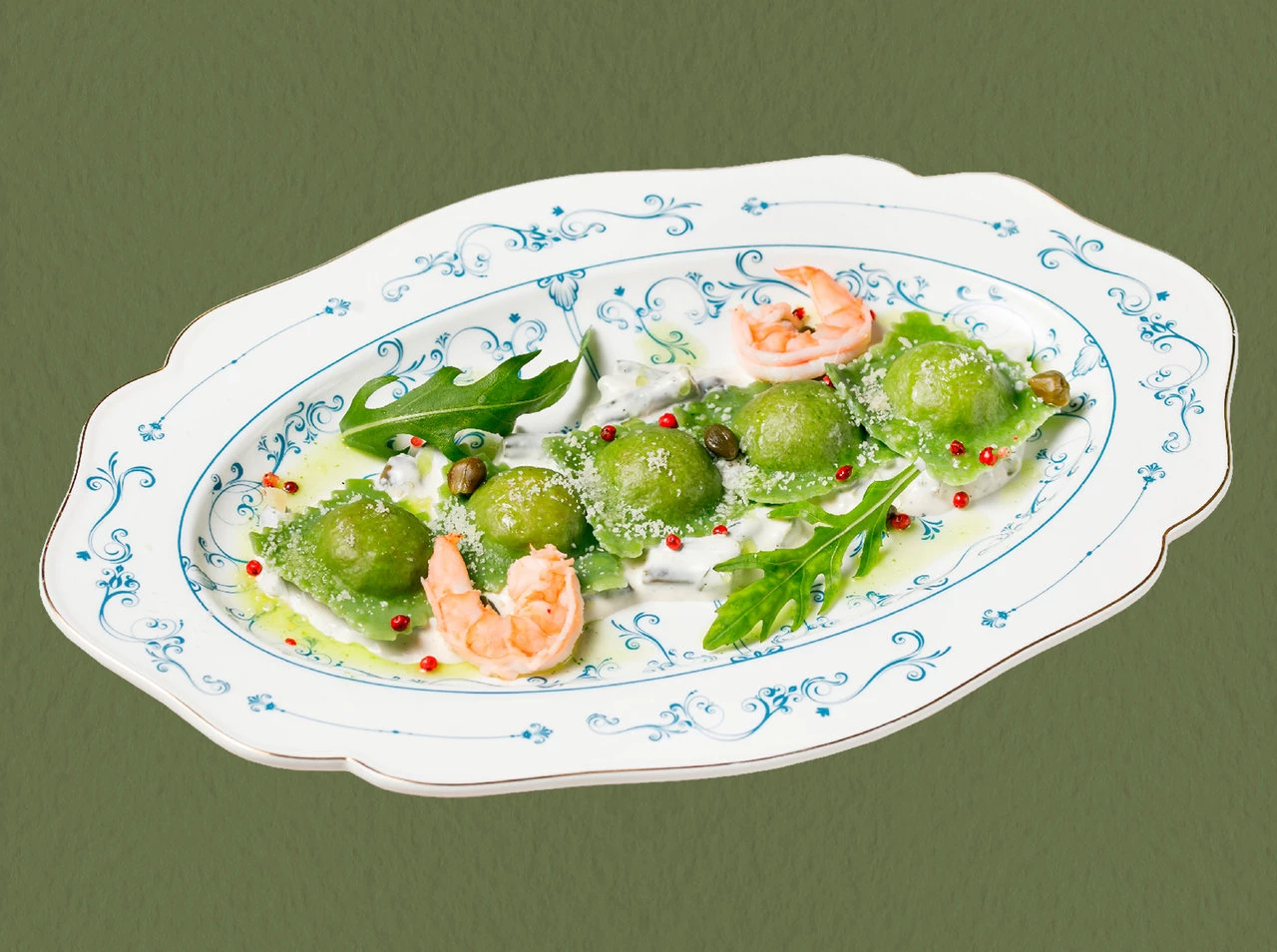 Равиоли с крабом и креветками